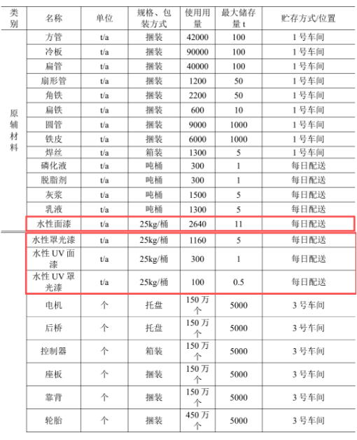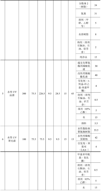 本项目含挥发性无机物的涂料有电泳漆、水性面漆、水性罩光漆、水性UV 面漆、水性 UV 罩光漆。