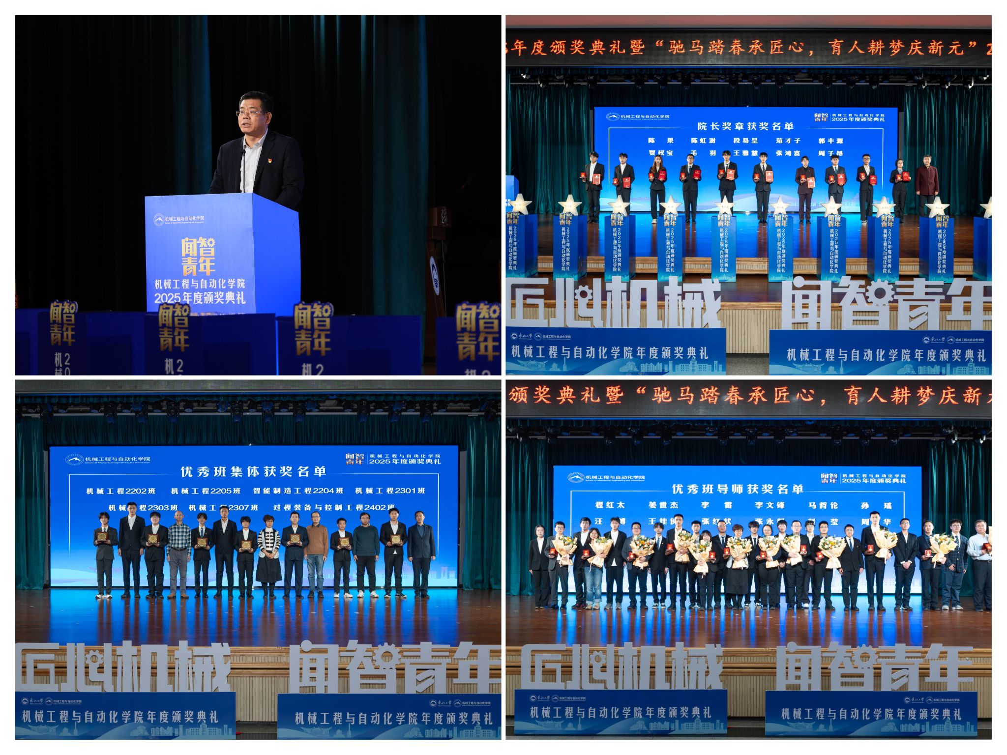 学院党委郝建山正在致辞中系统回首了一年来学院取得的主要成绩。学院积极办事国度计谋,投身深度金属矿智能开采纳配备全国沉点尝试室扶植,并正在环节科研范畴实现标记性冲破,获得国度严沉专项支撑。同时,学院成功引进增材取激光制制范畴领军团队,稳步推进学校新增学位点扶植,为久远成长奠基根本。正在人才培育方面,学院学子表示凸起,研究生学术丰盛,正在“挑和杯”“中国国际大学生立异大赛”等多项赛事中斩获国度级项,结业生就业率持续连结高位,展示了全面成长的优良素养。郝建山阐释了“闻智青年”品牌的育人内涵,勉励全体师生胸怀“国之大者”,将小我成长融入“制制强国”计谋,过硬本事,怯于立异创制,勤奋成为担任平易近族回复大任的时代新人。副院长罗忠表扬决定。颁环节分三轮顺次进行。起首颁布的是“院长章”,刘云飞为毛羽等10名正在专业进修、科技立异、社会实践等方面表示杰出的学生颁布章。随后颁布“优良班集体”项,班导师代表为7个正在班风、学风及凝结力扶植中成效显著的班级颁。最初,仪式聚焦育人一线论理学生代表向获评“优良班导师”的教员们献上鲜花取荣誉证书,表达诚挚感谢感动。“院长章”获得者代表毛羽连系科研竞赛取意愿办事履历,讲述了“道阻且长,行则将至”的成长;“优良班集体”获代表豆煜轩分享了班级凝心聚力、共建优秀学风的活泼经验。正在“闻智匠心 共话青蓝”出格环节,优良班导师马哲伦取所带班级学生代表刘定佳同台交换,从分歧视角展示了师生间思惟引领、学业互帮、讲授相长的温情互动,彰显了育人一线的深挚交谊取结实成效。据悉,“闻智青年”是机械工程取从动化学院出力打制的文化育人品牌。本次颁仪式既是年度的集中展现,也是典型树立、激励朝上进步的主要平台,旨正在指导全体学生以先辈为楷模,夯实专业根本、锻制立异能力,全球视野取创制活力的杰出工程人才,为学校“双一流”扶植和高质量成长注入芳华力量。